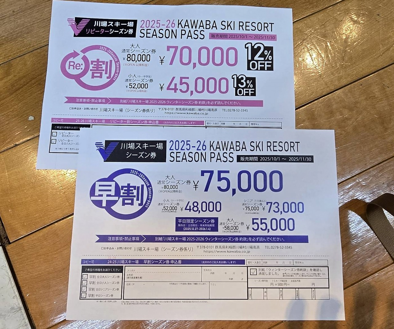 ”川場スキー場”早割シーズン券、早割券