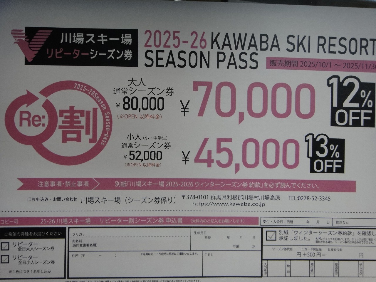 川場スキー場のシーズン券&早割券もチェックしてくださいね。