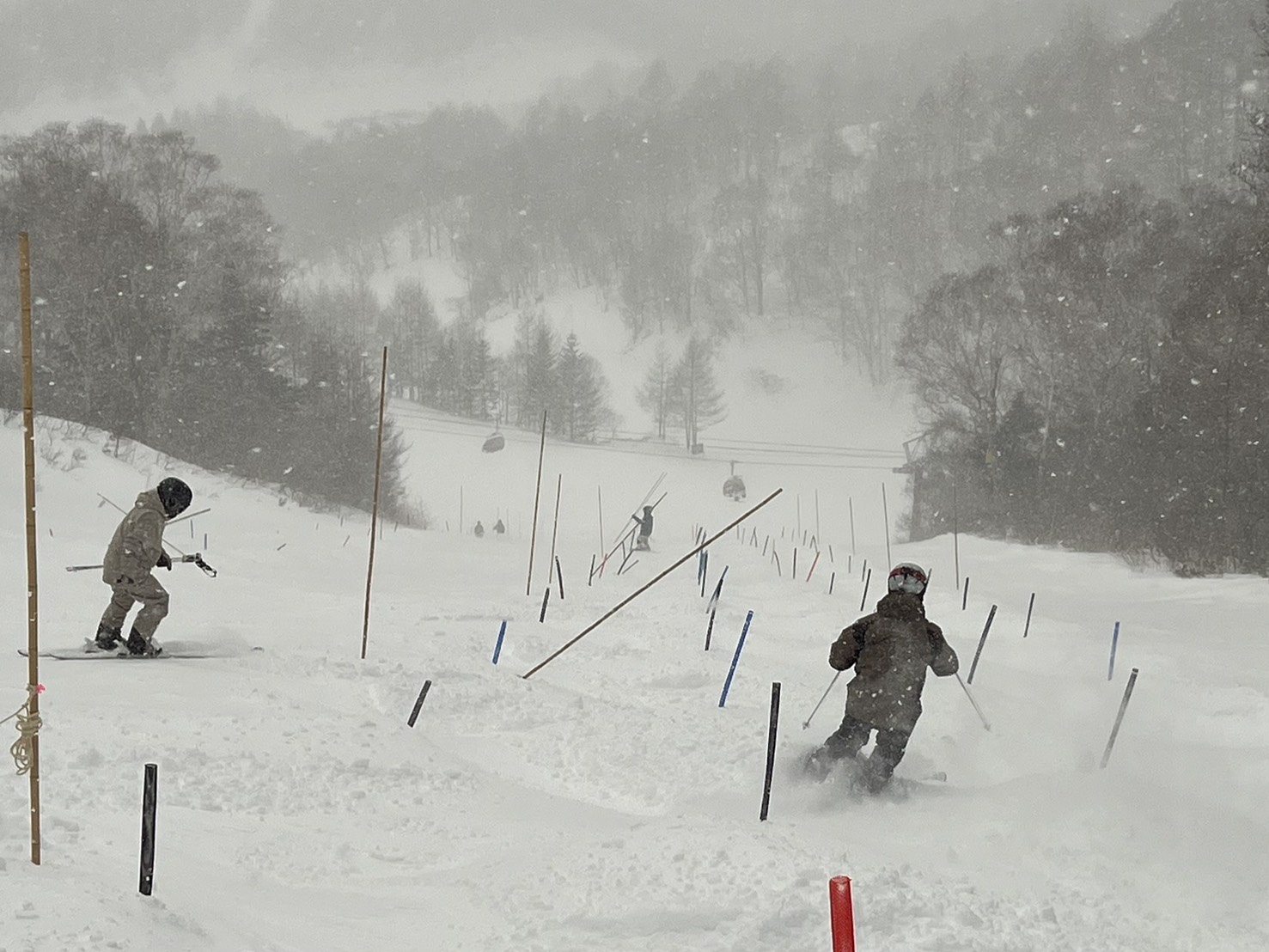 寒くてもモーグルコースは大人気。