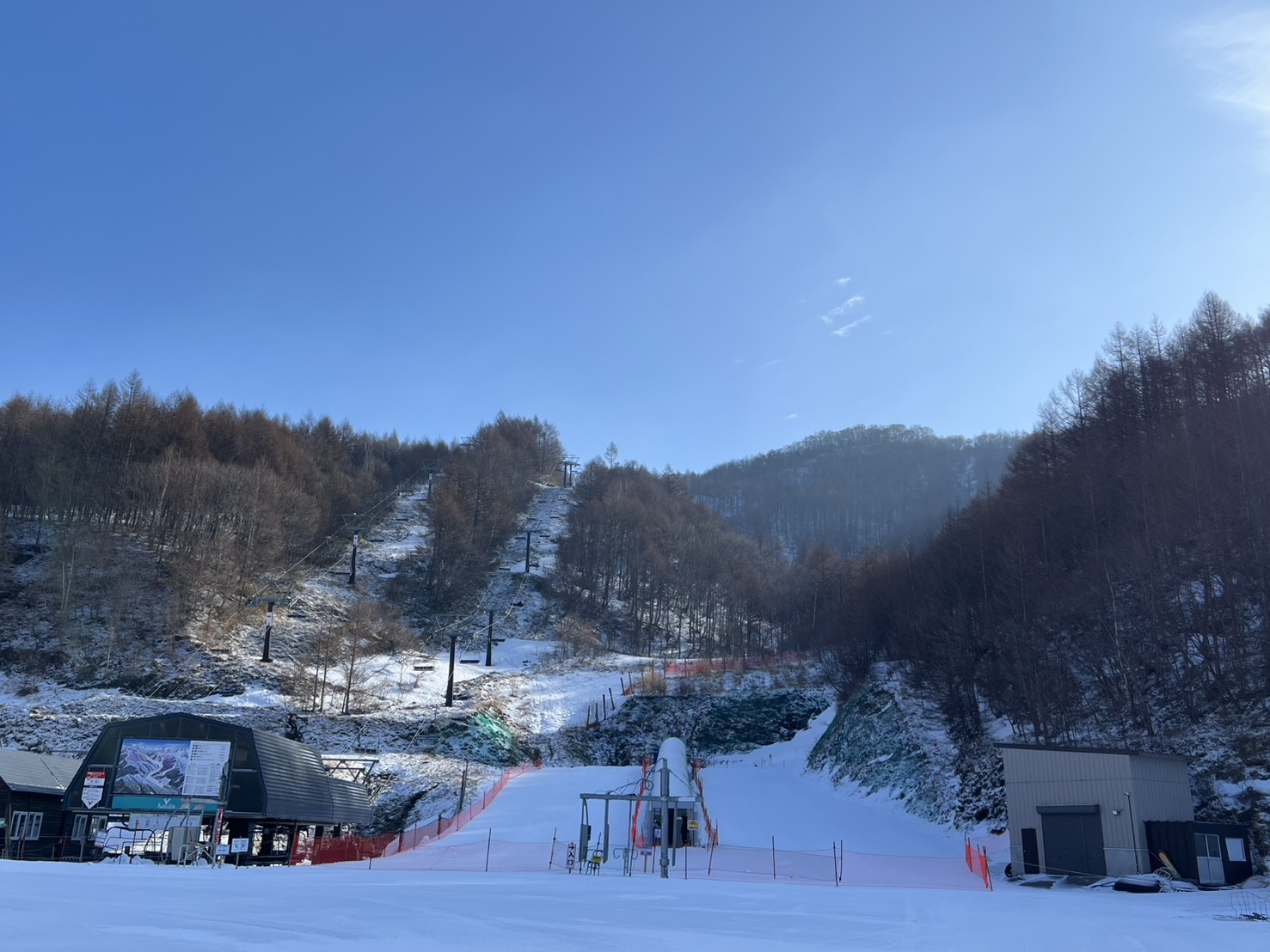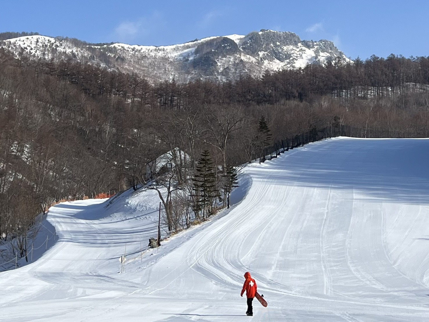 急斜面は雪が少ないので気をつけて降りてください。