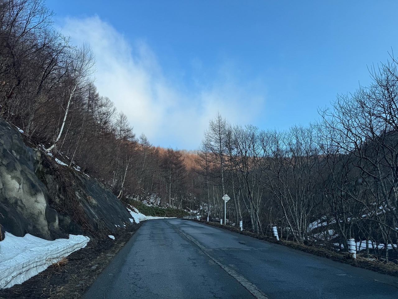 急斜面は雪が少ないので気をつけて降りてください。