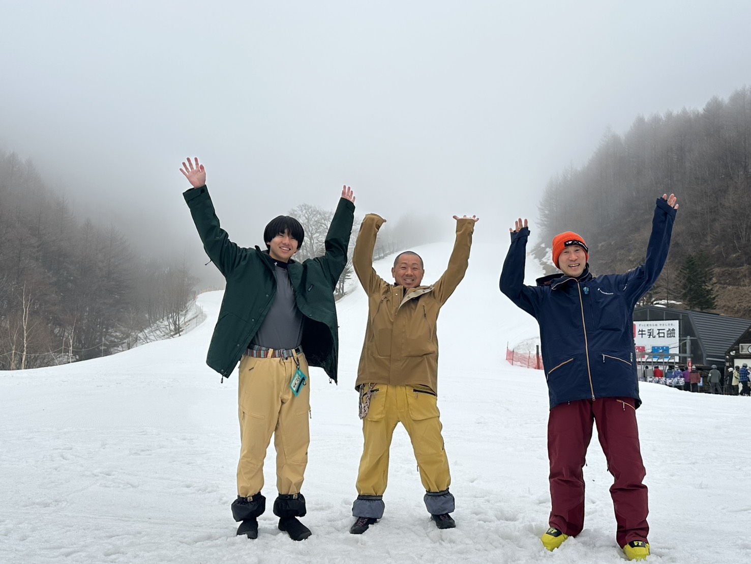 干したビブやテントの回収作業も終わってスタッフはゲレンデへ向かっています。