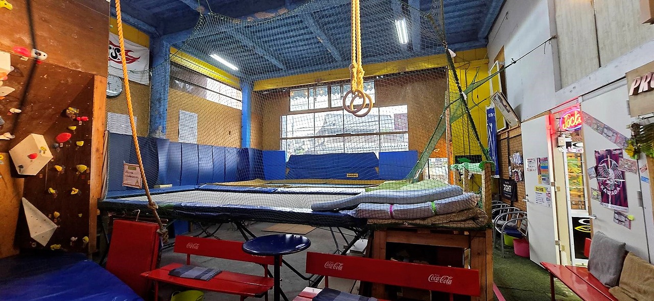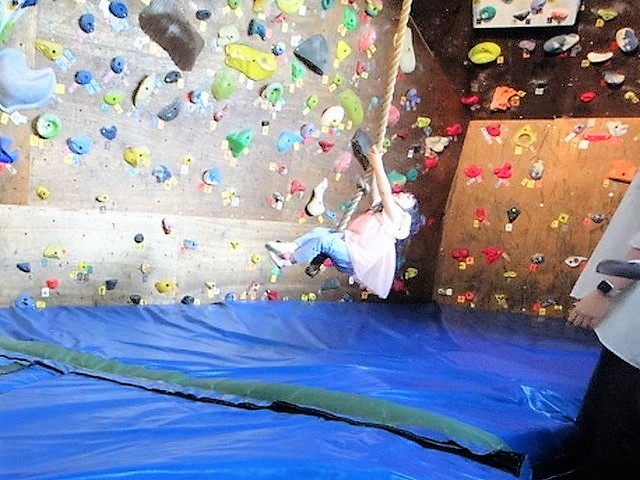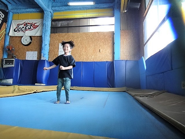 入会。元気にトランポリン、ターザンロープで